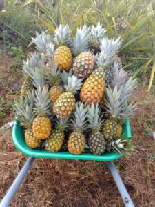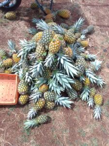 Il s’agit bien sûr des ananas bio cultivés par nos élèves eux-mêmes. Ces fruits frais et naturels sont remis à nos cantines pour servir de dessert aux élèves et au personnel. Une partie est vendue aux parents d’élèves à un prix forfaitaire afin qu’ils goûtent le fruit des travaux de leurs enfants.